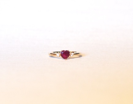 こちらハートシェイプカットのルビーを使ったシンプルなリングから、両脇にキュービックジルコニアを2石配置しシルバーに18金メッキを施したものにリメイクさせていただきました。