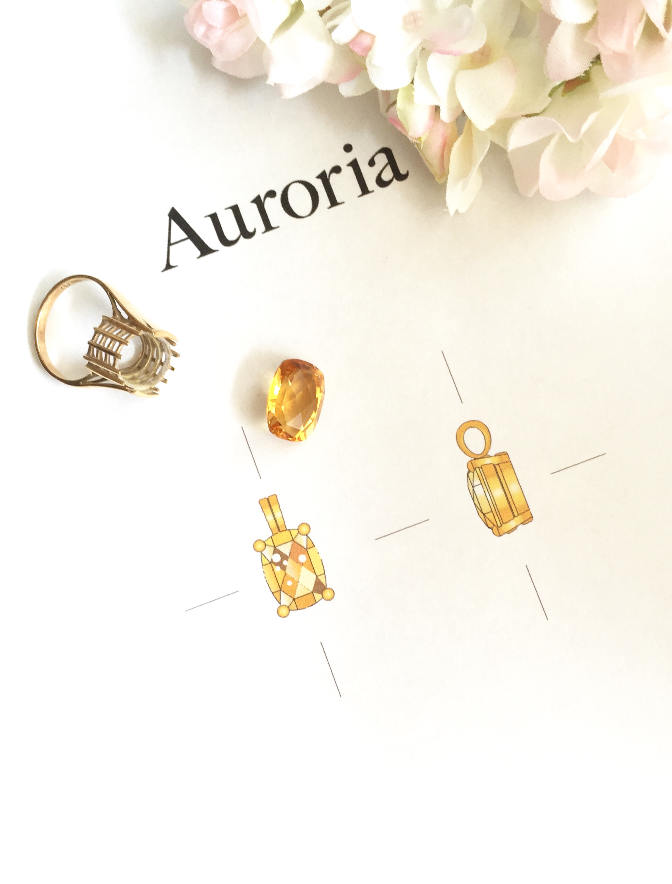 シトリンのリングをペンダントトップにリフォームとのオーダーでした。
